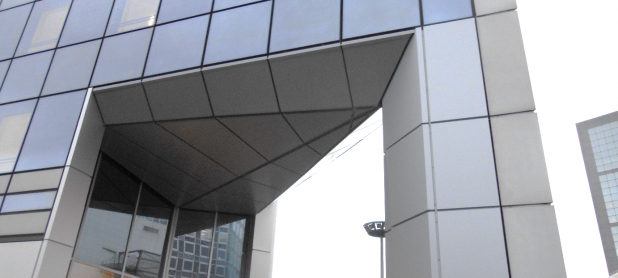 Immeuble de bureaux et activité: façades en panneaux sandwich "Promplan" et étanchéité des terrasses